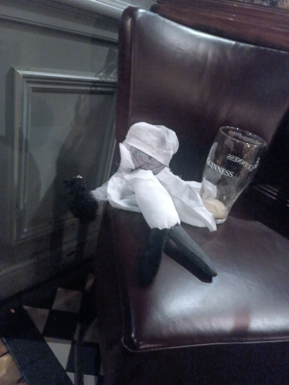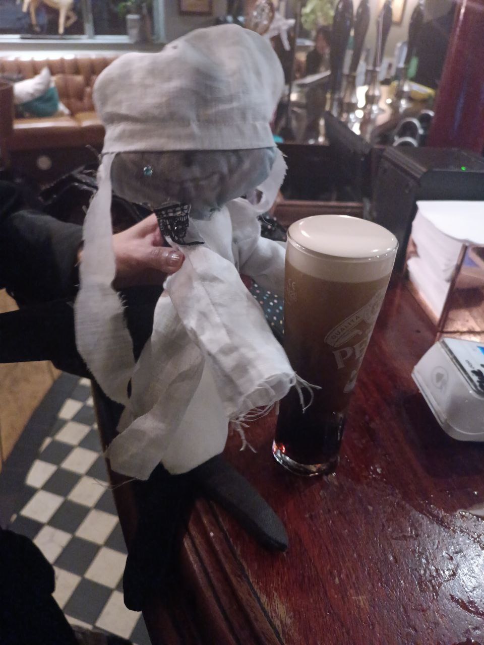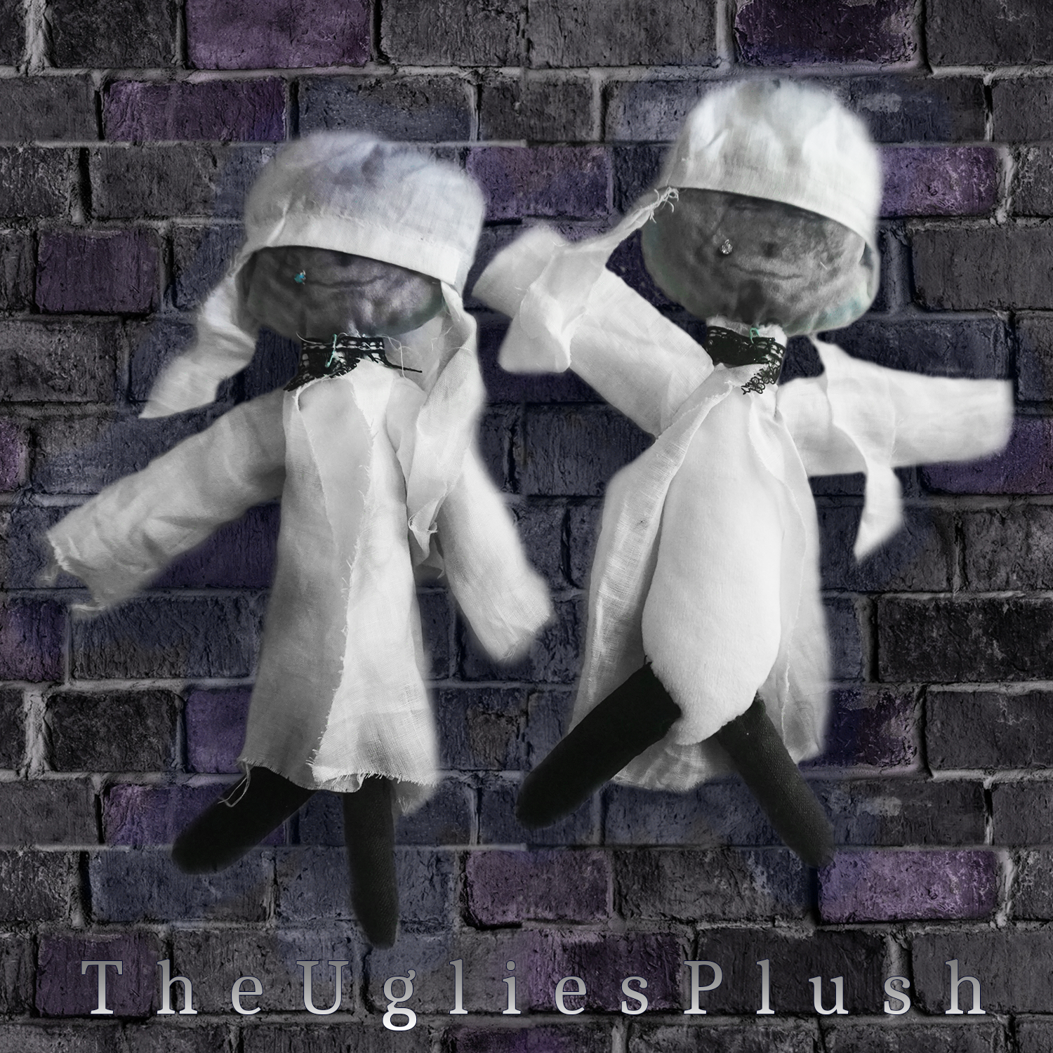 Made of Plush Polyester, Linen, Lace, Rhinestone cheek piercing (colour varies per piece), small safety pin